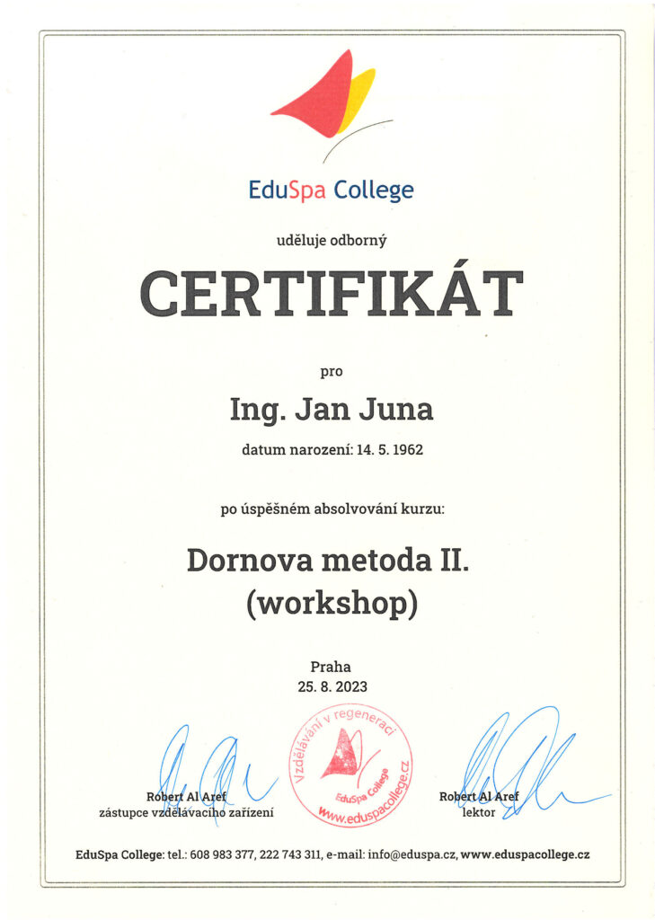 Dornova metoda je velice příjmená, bezbolestná technika, která ale dokáže odstranit i dlouhodobé nepříjemné problémy. Asi nejoblíbenější je srovnání délky nohou. Procedura, trvající i se zaškolením domácího cvičení do 20 minut, má veliký vliv na celou páteř, bolesti v kříži i bolesti hlavy.